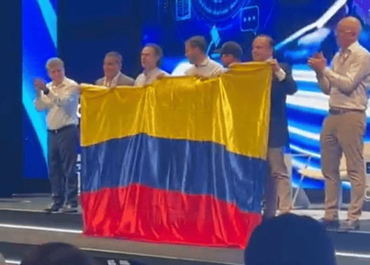 En pleno Congreso de la ANDI, los alcaldes de Cartagena, Medellín, Bogotá, Barranquilla y Cali dejaron a un lado las diferencias políticas para subir juntos al escenario, tomados de una misma bandera de Colombia.