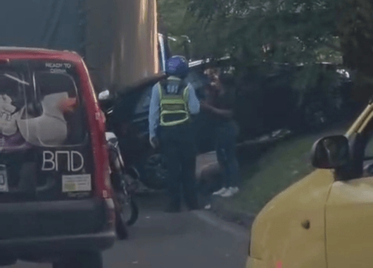 Un camión y un vehículo particular colisionaron en la Avenida Regional, a la altura de la intersección con la Autopista Norte, en Medellín. El hecho genera congestión vehicular en la zona.