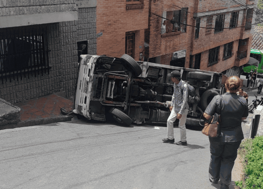En la mañana de este martes se registró un accidente de tránsito en el corregimiento de San Cristóbal, donde un camión terminó volcado mientras subía una de las empinadas lomas del casco urbano.