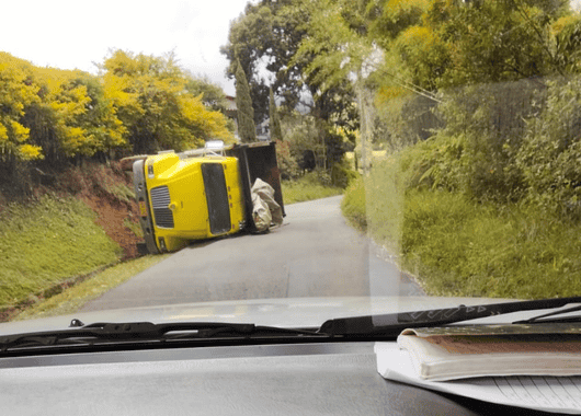 Un accidente de tránsito se registró en la vía que conduce al municipio de Jardín, suroeste de Antioquia, donde una volqueta terminó volcada en plena carretera.