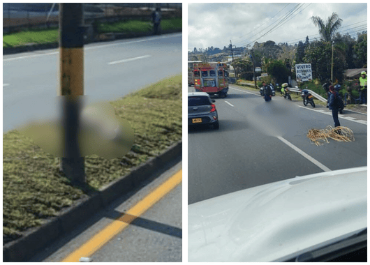 En la mañana de este martes se registró un accidente de tránsito en la autopista Medellín–Bogotá. Según el reporte preliminar, un motociclista resultó herido tras el choque, mientras que un canino que se encontraba en la vía perdió la vida en el incidente.