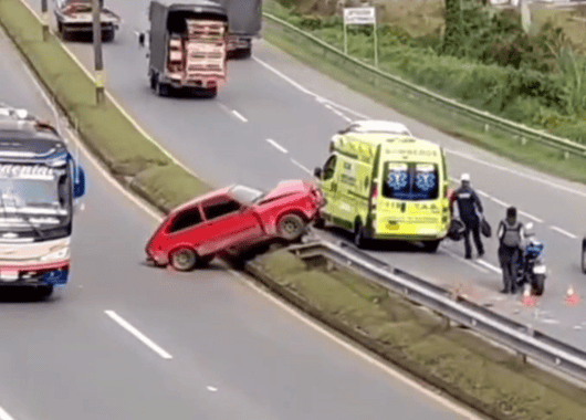 Según el reporte preliminar, el conductor de un vehículo particular perdió el control y terminó sobre el separador vial. Las autoridades hicieron presencia en el lugar para atender la situación y regular el tráfico en la zona.