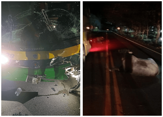 Uno de los búfalos quedó atrapado debajo del bus, mientras que los pasajeros fueron trasladados a otros vehículos para continuar su viaje hacia sus destinos.