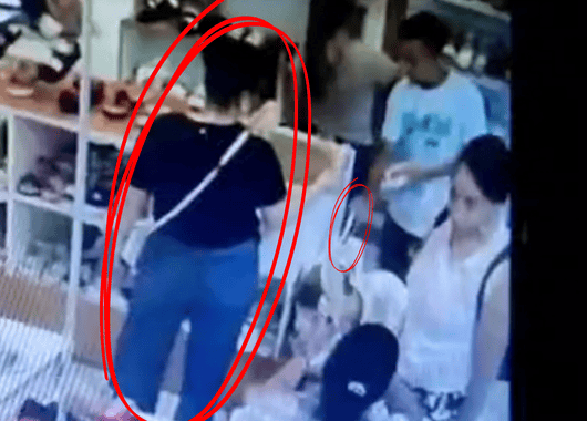 Según las imágenes, la víctima se encontraba midiendo unos zapatos cuando los presuntos ladrones aprovecharon el descuido para llevarse un celular de color fucsia.