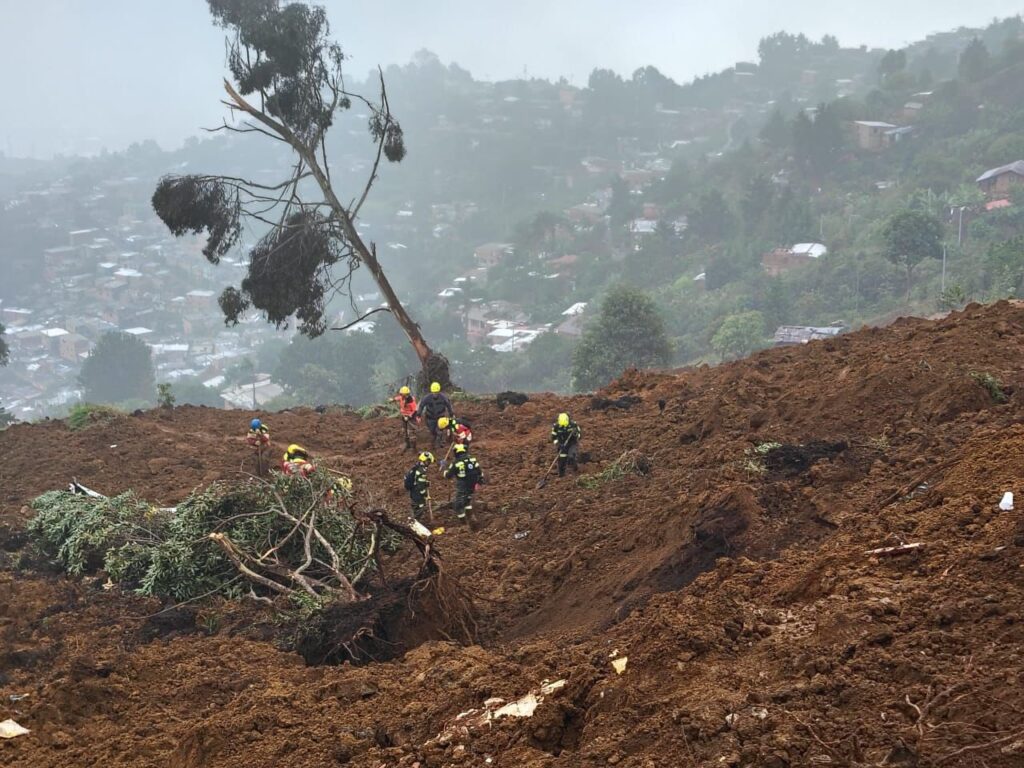 El Cuerpo Oficial de Bomberos Medellín continúa adelantando labores de búsqueda y rescate, mientras que equipos técnicos realizan la evaluación estructural de los predios impactados por la emergencia.