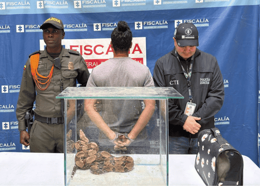 Durante la intervención fue incautada una boa constrictor, especie protegida de la fauna silvestre colombiana, cuyo valor ecológico está estimado en seis salarios mínimos legales mensuales vigentes. También se realizó la aprehensión preventiva de un conejo, que según las primeras verificaciones, sería utilizado para alimentar al reptil.