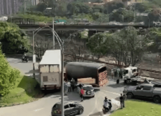 De acuerdo con las imágenes conocidas, una tractomula estaría saliendo del retorno cuando fue impactada en uno de sus costados por otro camión, generando la obstrucción de la vía y congestión en el sector.