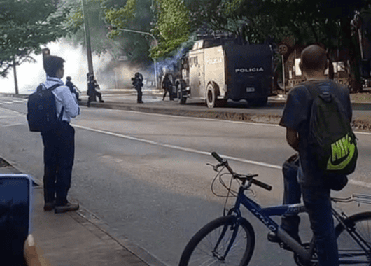 En la tarde de este viernes se registraron disturbios en la calle Barranquilla, en inmediaciones de la Universidad de Antioquia, en Medellín. Los enfrentamientos se presentaron entre integrantes del grupo UNDEMO y encapuchados que participaron en las manifestaciones convocadas durante la jornada.