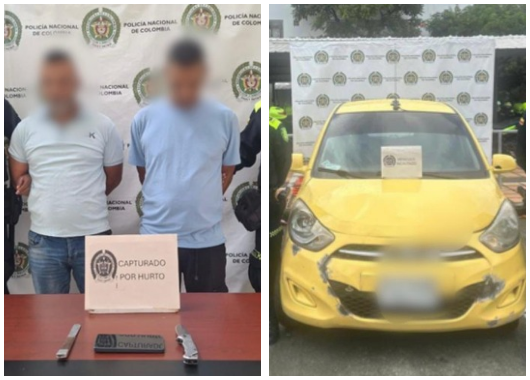 Con base en las características suministradas, los uniformados lograron interceptar el vehículo. Durante el registro, encontraron el celular hurtado y dos armas blancas en poder de los sospechosos.