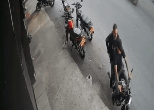 En plena luz del día y ante la mirada de transeúntes, dos delincuentes protagonizaron un nuevo hurto de motocicleta en el barrio Robledo Aures. El hecho, captado por una cámara de seguridad, muestra cómo los sujetos llegan en una moto; el parrillero desciende, quita el seguro con facilidad, enciende el vehículo y huye como si nada.