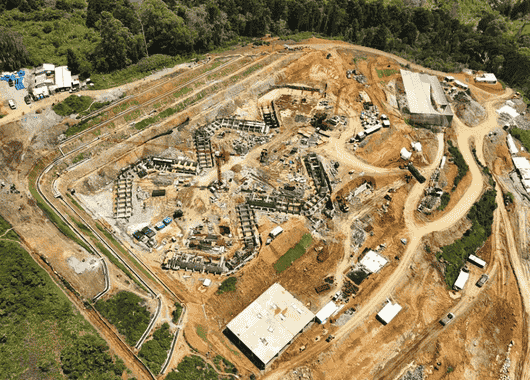 De acuerdo con la Administración Distrital, la obra registra actualmente un avance del 9 %. En el lugar se adelantan labores de excavación de plataformas, construcción de la vía de acceso, pilas estructurales, muros de contención, estructuras de pabellones y obras hidráulicas.