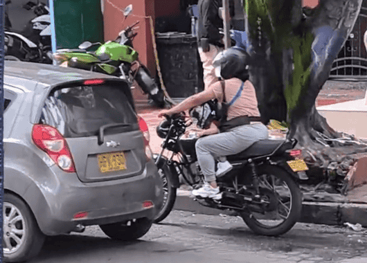 En video quedó registrado un preocupante acto de imprudencia en el sector Simón Bolívar, en Itagüí. Una persona conducía una motocicleta con un bebé al frente, sin las medidas mínimas de seguridad, y además cruzó un semáforo en rojo.
