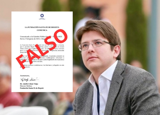 La Fundación Santa Fe de Bogotá alertó a la opinión pública sobre la circulación de un comunicado falso en el que se informa, de manera errónea, el fallecimiento del paciente Miguel Uribe Turbay.
