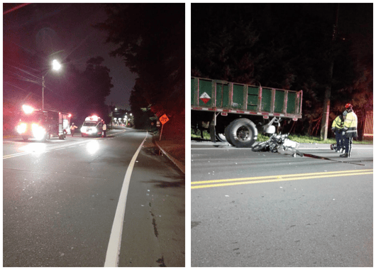Según las primeras versiones, el conductor de la moto colisionó contra una volqueta que permanecía estacionada a un costado de la vía. Las autoridades atendieron la situación y adelantan las investigaciones para determinar las causas exactas del siniestro.