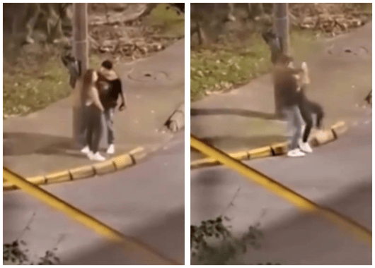 En un video quedó registrado el momento en que un hombre agredió a una mujer cerca de la canalización de la cancha La Paloma. Varios motociclistas que pasaban por el lugar intervinieron para detener la agresión y auxiliar a la víctima.