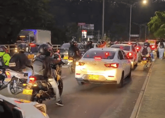 La situación se extiende desde la zona de la Fábrica de Licores de Antioquia, donde el flujo vehicular es prácticamente nulo, generando afectaciones tanto en el transporte público como en el particular.