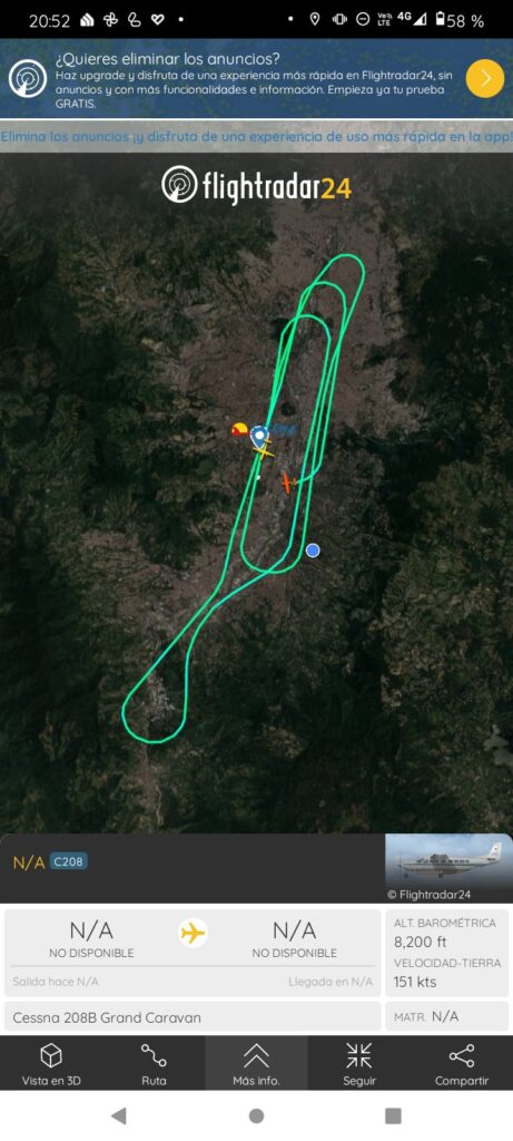 Con varias aplicaciones, los ciudadanos registraron este sobrevuelo, que no es común, ya que el aeropuerto local, el Olaya Herrera, solo opera hasta las seis de la tarde.