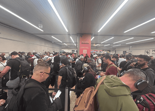 En el aeropuerto internacional José María Córdova, de Rionegro, los viajeros reportan largas filas y retrasos que ya superan las tres horas.