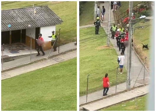 Videos grabados por habitantes del sector muestran el angustiante momento en que un socorrista corre con la niña en brazos hacia una ambulancia. Fue trasladada al Hospital de Caldas con un paro cardiorrespiratorio.
