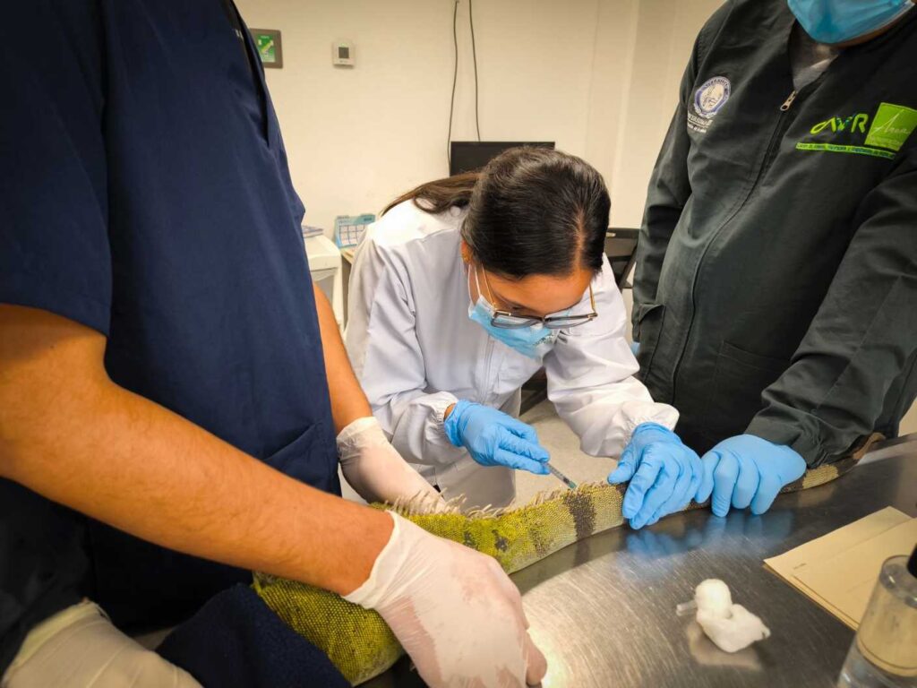 La iguana presentaba severos signos de deterioro: desnutrición, ausencia de falanges, piel seca y descamada, dificultad para desplazarse y un comportamiento alterado por la domesticación. “El animal estaba extremadamente amansado, no corría ni reaccionaba como lo haría un individuo silvestre”, explicaron desde el CAVR, evidenciando la pérdida total de sus conductas naturales.
