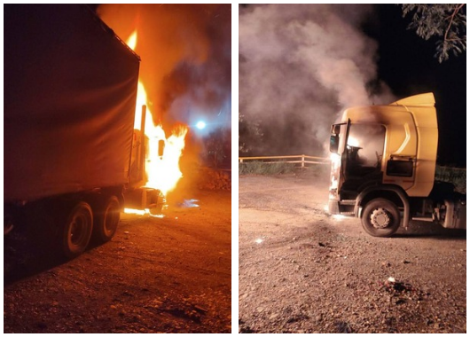 Violencia en las vías: queman dos camiones cerca de Puerto Valdivia, Antioquia